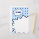 Poppa konst inspirerad brevpapper som presenterar en blåttbakgrund med ett blåtthalvtonmönster. Den små vitdesignen läser "från skrivbordet av" (personifiera med ditt namn.), Större design för handskriven text. Sök efter att matcha objekt liksom porto och adressetiketter i "den popkonst" kategorien av Jills Paperie.