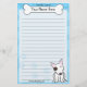 Rolig brevpapper för terrieren för den Kawaii vittjuren har en gullig tecknad hundavel i den lägre höger att tränga någon, sporten som ett mörkt öga lappar. Personifiera ögonblickligen denna brevpapper, genom att byta ut insida "för ditt namn här" hundben. Bakgrunden är blått.