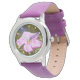 Ett foto av en rosa fem ro blommar i en trädgård. Det finns en vit färgad klockan-ansikte för att markera minuter och timmar. Copyright Kimberly J Tilley.