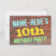 Den här födelsedagsfest inbjudan-roligten har ett meddelande som "NAMN-HERE's tionde FÖDELSEDAGSFEST!", där namn kan vara personlig, på framsidan. Bakgrunden är en återgivning av en tegelvägg som består av några rödbruna tegelstenar av färgad. anpassadets meddelandetext på framsidan har färger som blått, gult och grönt, och det har ett utseende som inspireras av målad graffiti. Baksidan innehåller ett anpassade som kan innehålla relevant information om födelsedagsfesten. Födelsedagsfest inbjudan som detta kan vara ett roligt för inbjudan familj och vänner att hålla en födelsedagsfest för någon som firar sin tioårsdag. [~Z0000287]
