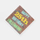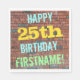 Den pappra napkin-designen med roligtens födelsedag innehåller ett meddelande som "LYCKLIG 25:e BIRTHDAY, FIRSTNAME!", där namn kan vara personlig. Bakgrunden är en återgivning av en tegelvägg som består av några rödbruna tegelstenar av färgad. Anpassadets meddelandetext har färg som blått, gult och grönt, och det har ett utseende som inspirerats av den målade graffiti. Napkins som dessa skulle kanske kunna användas i en födelsedagsfest till någon som firar sin tjugofemte födelsedag. [~Z0000271]