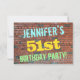 I födelsedagsfest inbjudan-roligten finns ett meddelande som "JENNIFER:s 51:a FÖDELSEDAGSFEST!", där namn kan vara personlig, på framsidan. Bakgrunden är en återgivning av en tegelvägg som består av några rödbruna tegelstenar av färgad. Anpassadets meddelandetext på framsidan har färg som blått, gult och grönt, och det har ett utseende som inspirerats av den målade graffiti. Baksidan innehåller ett anpassade som kan innehålla relevant information om födelsedagsfesten. Födelsedagsfest inbjudan som detta kan vara ett roligt till inbjudan familj och vänner till en födelsedagsfest för någon som firar sin femtioförsta födelsedag. [~Z0000287]