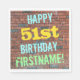 Den pappra napkin-designen med roligtens födelsedag innehåller ett meddelande som "LYCKLIG 51:a BIRTHDAY, FIRSTNAME!", där namn kan vara personlig. Bakgrunden är en återgivning av en tegelvägg som består av några rödbruna tegelstenar av färgad. Anpassadets meddelandetext har färg som blått, gult och grönt, och det har ett utseende som inspirerats av den målade graffiti. Napkins som dessa kan kanske användas i en födelsedagsfest till någon som firar sin femtioförsta födelsedag. [~Z0000271]