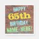 Den här roligtens pappra napkin-designen innehåller ett meddelande som "LYCKLIG 65e BIRTHDAY, NAMN-HERE!", där namn kan vara personlig. Bakgrunden är en återgivning av en tegelvägg som består av några rödbruna tegelstenar av färgad. Anpassadets meddelandetext har färg som blått, gult och grönt, och det har ett utseende som inspirerats av den målade graffiti. Napor som dessa kan kanske användas i en födelsedagsfest till någon som firar sin sextiofemårsdag. [~Z0000271]