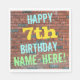 Den här roligtens pappra napkin-design med födelsedagstext innehåller ett meddelande som "LYCKLIG 7:e BIRTHDAY, NAMN-HERE!", där namn kan vara personlig. Bakgrunden är en återgivning av en tegelvägg som består av några rödbruna tegelstenar av färgad. Anpassadets meddelandetext har färg som blått, gult och grönt, och det har ett utseende som inspirerats av den målade graffiti. Napkins som dessa kan kanske användas i en födelsedagsfest till någon som firar sin sjunde födelsedag. [~Z0000271]