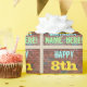 Den här roligtens födelsedagskalematerade pappra utformning innehåller ett meddelande som "LYCKLIG 8:e BIRTHDAY, NAMN-HERE!", där namn kan vara personlig. Bakgrunden är en återgivning av en tegelvägg som består av några rödbruna tegelstenar av färgad. Anpassadets meddelandetext har färg som blått, gult och grönt, och det har ett utseende som inspirerats av den målade graffiti. Att packa pappert som detta skulle kanske kunna användas när man fyller på födelsedagskalkyl för någon som firar sin åttonde födelsedag. [~Z0000274]