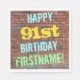 Den pappra napkin-designen med roligtens födelsedag innehåller ett meddelande som "LYCKLIG 91:a BIRTHDAY, FIRSTNAME!", där namn kan vara personlig. Bakgrunden är en återgivning av en tegelvägg som består av några rödbruna tegelstenar av färgad. Anpassadets meddelandetext har färg som blått, gult och grönt, och det har ett utseende som inspirerats av den målade graffiti. Napkins som dessa skulle kanske kunna användas i en födelsedagsfest till någon som firar sin nittioårsdag. [~Z0000271]