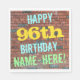 Den här roligtens pappra napkin-design med födelsedagstext innehåller ett meddelande som "LYCKLIG 96:e BIRTHDAY, NAMN-HERE!", där namn kan vara personlig. Bakgrunden är en återgivning av en tegelvägg som består av några rödbruna tegelstenar av färgad. Anpassadets meddelandetext har färg som blått, gult och grönt, och det har ett utseende som inspirerats av den målade graffiti. Napkins som dessa kan kanske användas i en födelsedagsfest till någon som firar sin nittiosjätte födelsedag. [~Z0000271]