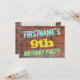 Födelsedagsfest inbjudan-designen i roligt innehåller ett meddelande som "FIRSTNAME's 9th FÖDELSEDAGSFEST!", där namn kan vara personlig, på framsidan. Bakgrunden är en återgivning av en tegelvägg som består av några rödbruna tegelstenar av färgad. Anpassadets meddelandetext på framsidan har färg som blått, gult och grönt, och det har ett utseende som inspirerats av den målade graffiti. Baksidan innehåller ett anpassade som kan innehålla relevant information om födelsedagsfesten. Födelsedagsfest inbjudan som detta kan vara ett roligt till inbjudan familj och vänner till en födelsedagsfest för någon som firar sin nionde födelsedag. [~Z0000287]