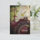 Anpassa charming Bride på Tractor Land Farm Bröllop OSA Response Card med ditt specifika svarsdatum för giftermål och koppla ihop med motsvarande inbjudningar för att skapa en uppsättning koordinatstationära datorer. Dessa rustic chic anpassningsbar ranch Tema r.s.v.p.-kort har ett höggradigt digitalt förbättrat foto av en brud som bär en vit satin bröllop-klänning och westerna cowboyskor av brunt läder som bär en bukett av gult daisy och sitta på en gammal antiktraktor.