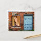 brickvägg och blått öppningskort för dörr vykort