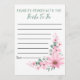 Bridal Shower Favorite Memory Game Pink Flowers Rådkort