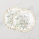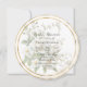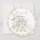 A beautiful round bridal shower invitation of white roses in reduced opacity with a double gold color frame.