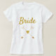 Den här skjortan har en fin guld och vit design och innehåller "Bride" i Guld kursivt brev. Under typografin korsar jag hjärtpilarna. Ställe din beställning i dag!