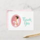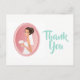 Ett tack för möhippan som du visar med en illustration av en leende brud som håller en bukett med blommor i hennes finare vita bröllop klänning och bär en slöja. Ställ in en rosa oval ram med ett skalat gräns.