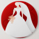 BRIDE WEARING BRÖLLOP GOWN AND VEIL AND HOLDING FLOWER BOUQUET PÅ EN RED BAKGRUND