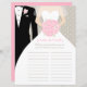 Elegant grafik med tux och brud med en slöja som håller ett schysst spel för rosa blommigt möhippa i ro. Redigera den här roligtens spel för möhippa med din brud och dina brudar i namn. Gästerna i möhippa party uppmanas att skapa så många ord som möjligt från namn i bruden och brudgummen och fylla i ord som de skapar in på det linjer som tillhandahålls. En enkel bra till användan som isbrytare. Sarah Trett har en unik design och grafik.