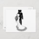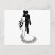 En brud och bröllop par i silhuette. Med briden i en vit möhippa klänningsgäst med en blommigt blommor och en blommigt snöre mönster kring hennes klänning