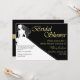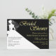 Elegant inbjudningskort för möhippan, i svartvitt, med en vit silhuett av en brud mot en svart bakgrund. Guld-tonsgrafik läser Möhippa. All text nedan i gyllene och svarta gulter är redo att anpassa till din möhippa-händelse. Fin inbjudan till bruden kommer att ta hand om alla hennes bröllop-keepsakes.