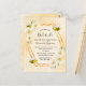 Elegant, roligt inbjudningskort för möhippan. Gult, vit bakgrund med en bikaka mönster. Med faux guld geometric ram. Dekorerad med en lätt gult, grädda färgad tropiska blommigtar blommor, hibiscus och lycklig humla. Med texten: Bride to Bee och namn i bruden på framsidan skriven med ett modernt handskript skrivet stil. Black brev. Baksida: gult vit honeycomb mönster och ett bi. Tips! Om du inte vill att det ska se ut som ett vykort klickar du på anpassa, går till baksidan och tar bort delaren och lägger till frimärke.