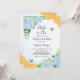 Inbjudningskort för möhippa har en blommigt med vattenfärg med blå blommor, löv, honungsbin och honungskomb. Matchningsprodukter finns också tillgängliga.