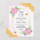 Inbjudningskort för möhippa har en vattenfärgsdesign med rosa vattenblommor, löv, honungsbin, honungskomb och ett faux guld geometric ram. Matchningsprodukter finns också tillgängliga.