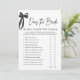Låt bridens kunskaper testas med den här roligten och roa "Känner Bride Verkligen till Groom?"-spelet 🖤 🎀! Med en chic minimalistisk svartbågdesign utmanar spelet bruden att besvara frågor om sin framtida make/maka, medan gästerna gissar hur väl hon känner honom! 💕 ett perfekt sätt att tillföra skratt och glädje till en sofistikerad och snyggt möhippa. Anpassa och skriv ut för en roligt och minnesvärd aktivitet!
