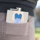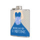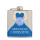 Elegant grafik i söt blå klänning i en bägare av rosa stiliserad höftkolv i ro bröllop. Läser Bridesmaid Christine. Anpassa med din egen namn och titel. En underbar presentidé för möhippor, höns nätter eller bröllop-repetitioner.