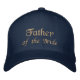 Far av brudhatten. En sockel för stil för det stolta Pappa. Se här på mörk blått med brunt broderi som lyder "Far i Bride". Du väljer färg.
