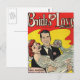 Täckning från en vintage tecknad bok kallad "Brides Kärlek". Brid i strömmande vit bröllop-grav och slöja som bärs av hennes stiliga bridegroom