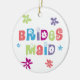 Bridesmaid är för. Bröllop Attendant keepsaké. Roligt färgstarka lycklig-färgstensfärgade ornament för bröllopsfesten som du kan anpassa på baksidan. Mängder av färgstarka blommor och blommigt.