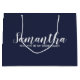 Bridesmaid Frieri | Modern Script Navy Blue Gift Bag med personlig bridesmaid's namn i vitt, modernt skript font stil på marin blå bakgrund. Även perfekt för maid of honor, blomsterflicka, groomsman, bäste man och ring.
