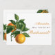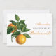 Den här eleganten "Kommer du att bli min Bridesmaid" frieri på den lämnat, en orange träd gren med två orangar och grönt löv. På högerna finns texten till frieri. namn och ord "Bridesmaid" är skrivna i ett kalligrafiskt skript för orange elegant, resten i små svarta hattar. På baksidan finns det orangar med löv på två hörn och meddelandet skrivs i samma elegant, men i svart. Orangen träd gren kommer från gamla botaniska illustrationer av Antonio Targioni Tozzetti (1785-1856), som nu är offentligt tillgängliga.