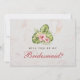 Den här eleganten "Kommer du att bli mitt Bridesmaid"-frieri kort har en marmorbakgrund och en tropisk blommigt arrangemang av rosa Hawaiian hibiscus (China ro), Monstera och handflatan löv och mindre vita blommor. Flammet är i mitten, ovanför texten, på framsidan och i två hörn på baksidan. "Bridesmaid" i ord är skrivet i ett kalligrafiskt skript med burgundröd elegant. Meddelandet på baksidan är skrivet i samma skript. dekorationen blommigt med kinesiskt hibiscus och tropiskt löv är vattenfärg, färgad av laomao_art från Pixabay, fri från kommersiell använda.