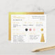 Ett faux guld bridesmaid info card, inklusive information om bröllop datum och plats, bröllop färg, brudens sida, brudklänningen och ett bridesmaid-frieri meddelande. Namn i bruden och titlarna är skrivna i ett elegant-skript. I det nedre hörnet av högerna finns det en faux-guld-folie. I mitten finns bröllop färg i cirklar. Färg kan ändras, med undantag för guld-cirkeln, dvs. faux guld foil. Baksidan är också faux guld foil.