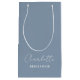 Bridesmaid | Minimalistiskt skript - blått handtag. Överraska dina brudar med en presentväska som är anpassad för dem. Det blomstrande skriptteckensnittet visningar på ett vackert sätt namn i ett modernt, minimalistiskt stil. Den mjuka dammiga blå nyansen tillför en aning lugnande färg.