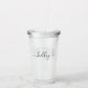 Klar plaståteranvändbar strå kopp-tumlare med "Bridesmaid The Dress Holder" roliga citat i stort modernt och trendig, brev och elegant, ett roterande namnteckning typsnitt. Anpassningsbar tryckt med hennes namn-personlig på baksidan, det är en roligt och en unik gåva, möhippa eller bachelorette Party keepsaké, eller en del av en koordinerande uppsättning gåvor från brudens sida.