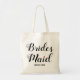 Bröllop Tote Bag, med hjälp av ett kort skript. "Bridesmaid" i ord i tryckmanuskalligrafi och en röd prick över brev "i" klipper denna moderna totepåse. Under den finns det utrymme att lägga till namn.