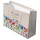 Personlig jokerblomma bröllop presentväska till din brud. Den här designen av söt blommigt har blommor av vattenfärgad vild i rosa lilac-orange och gult med handskriven typografi av elegant. Mallen är inställd för att du också ska kunna lägga till brudgummens namn, brudgummens namn och bröllop. Du kan också redigera Bridesmaid för någon annan i bröllopsfesten. Bläddra i min butik - vildblomsmatning - om du vill ha koordinerande element.
