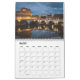 En kalender med 12 olika bilder av bryggar på natten
