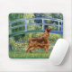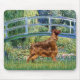 Lily Pond Bridge av Claude Monet, anpassad för att inkludera ett irländskt Setter. Med olika nyanser av grönt och blått är den här scenen en av Monets mest populära målningar.