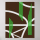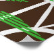 This abstract geometric design features a deep brown background crossed by flowing white curved lines and angular triangular shapes, creating a sense of structural rhythm. Over these, multiple sets of parallel green stripes are placed horizontally, adding dynamic balance and contrast. The composition evokes the idea of interconnected pathways or bridges seen from above, combining organic flow with precise geometry in a modern, minimalistic style.
