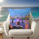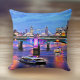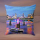 Denna kudde har en stiliserad nattsyn på Southwark- och Torn-bron från millenniebron vid Thames-floden i berömden i London i England.