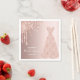Elegant, klassisk, glamorös och giftig möhippa-napkin för stil. En klänning i ro guld med faux ro guld glitter dropp. Metallisk bakgrund i ro guld tittar. Med texten: Möhippa på framsidan skriven med ett modernt skript för WHITE-färgaden, skrivet stil. Mall för bridens namn, blockera brev.