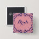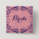 Knappen Bride. Elegant marin blå vintage blommigt snöre roterar ram över bakgrunden för pastellrosa som du kan ändra på webbplatsen. Om du behöver hjälp med att anpassa någon av mina designers kontaktar du ArtOnWear-designern. Kostnadsfri textformatering med hjälp av direkthjälp tillgänglig på begäran.