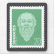 Illustration einer Briefmarke mit dem Abbild vom Philisophen Sokrates. Das Design ist auf transparentem Untergrund erstellt. Die Hintergrundfarbe kann individuell angepasst werden.