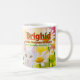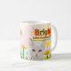 This lefty oriented colorful mug has a spring flower tribute to Brighid with a green eyed, white cat. Under her tribute it says, "Where Meows And Melodies Ignite", alluring to her realm of poetry, music, water and fire. Celtic polytheism and Irish mythology, Brigid (also spelled Brigit, Bríg, or Brighid) is a powerful and multifaceted deity. Her name translates to "the exalted one" or "the high one," reflecting her status as a central figure in the Celtic pantheon. She was the patroness of the filid (the elite poet-seers) and inspired creative "fire in the head".