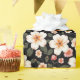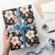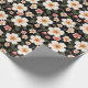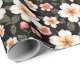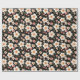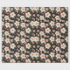 Rosa och vita skissade blommor och löv på svart bakgrundsdesign.