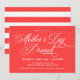 En vackert elegant och en feminin Mors dag Brunch-inbjudan i skarp koral med vackra rofétexttecken och vit text. Den andra sidan av inbjudan har en koral och vit rand mönster. Anpassa med din händelseinformation.