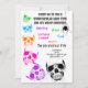 Tossade ljusa döskallar för grönt, rosa, svart, orange, blått och lila på dessa vita inbjudningar från Halloween fest. Anpassa texten. Skicka frågor eller en anpassningsbar till mig.